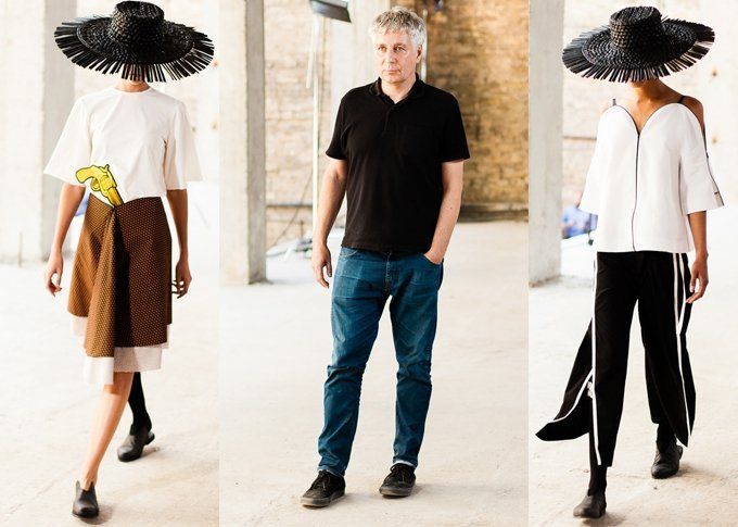 Fedor Vozianov known for his avant-garde style, use of black, and the performative aspect in his shows. In a previous season, he created clothing in real time by cutting a large square piece of fabric into the shape of a circle and then strategically draping it over the body of a model to become a dress.