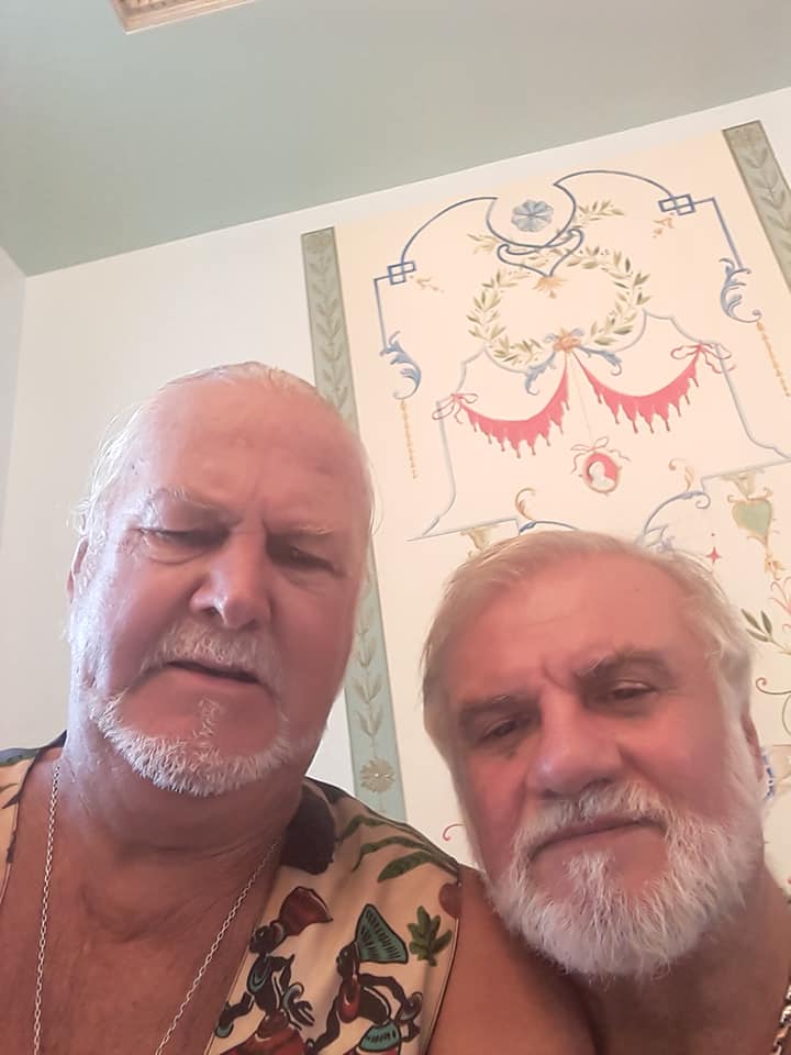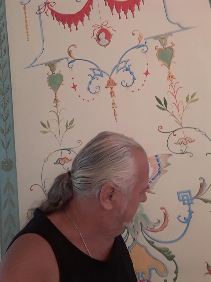 ARTIST PIETRO RAPISARDA and ARTIST HERBERT HOFER WORKING ON MURAL PAINTING IN THE FAMOUS VERSACE MANSION ( CASA CASURINA) IN OCEAN DRIVE, MIAMI BEACH
