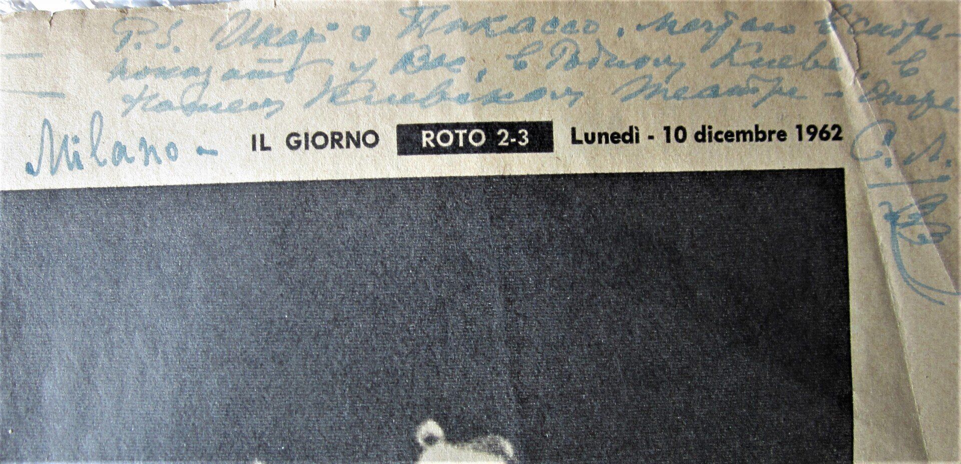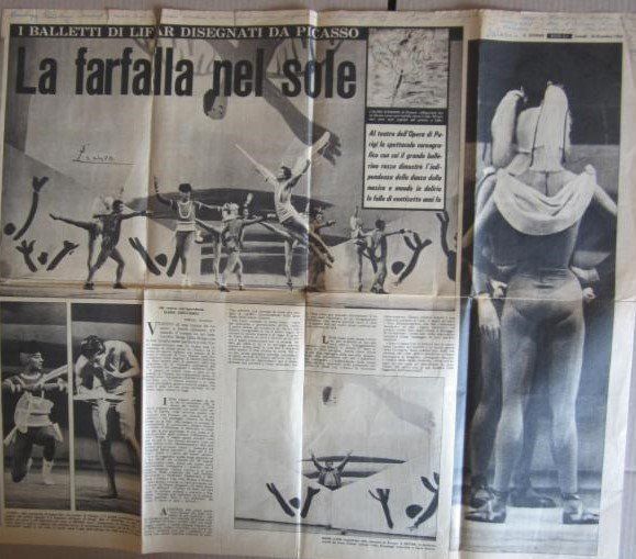 Milano. IL GIORNO newspaper, December 10, 1962. Ballet Icarus, which Lifar and Picasso revived in 1962.