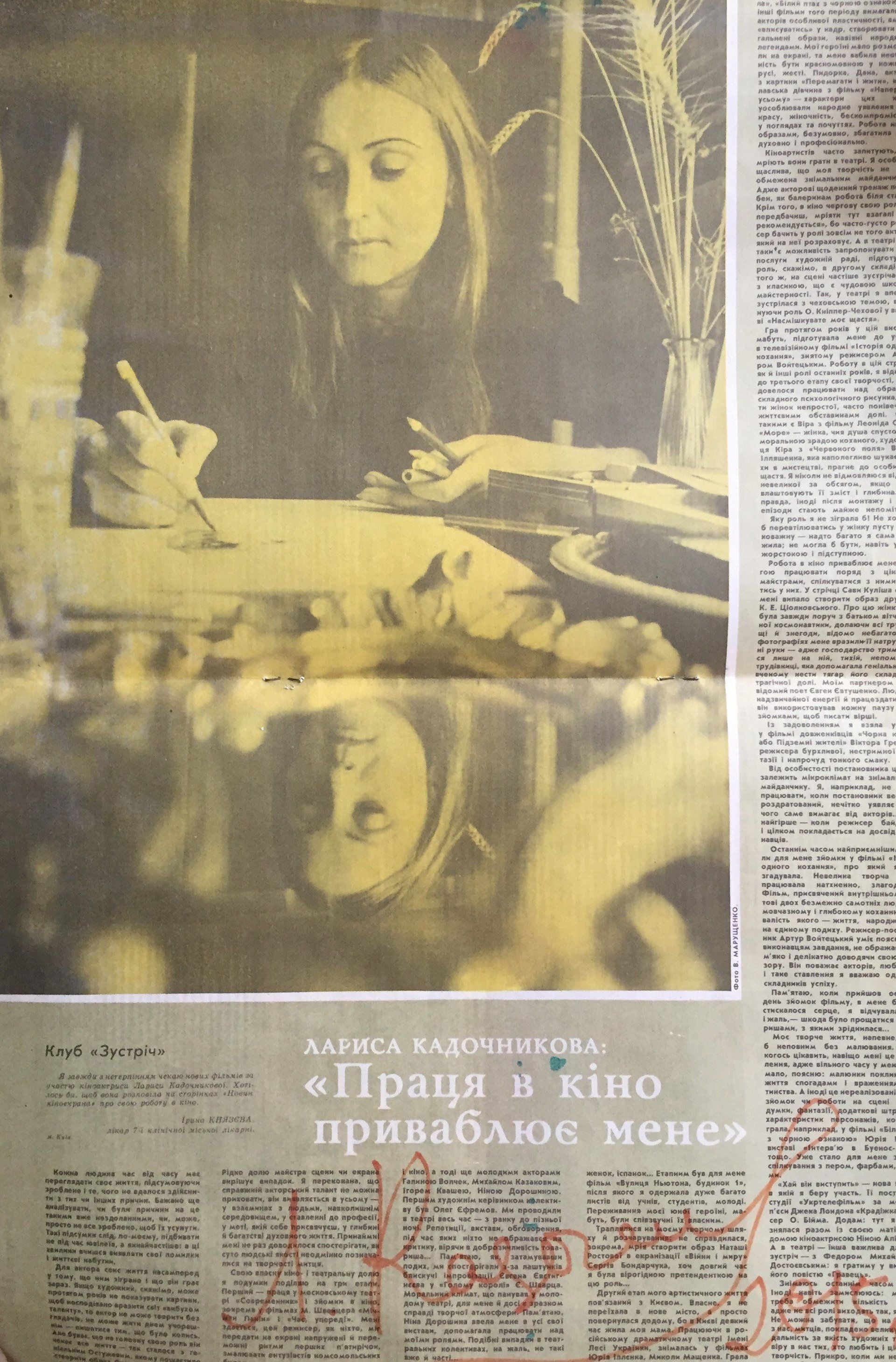 Serge Lifar writing in Russian on the top of newspaper, to Gontar (director of Kiev Opera Theater)