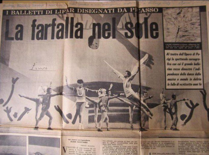 Milano. IL GIORNO newspaper, December 10, 1962. Ballet Icarus, which Lifar and Picasso revived in 1962.