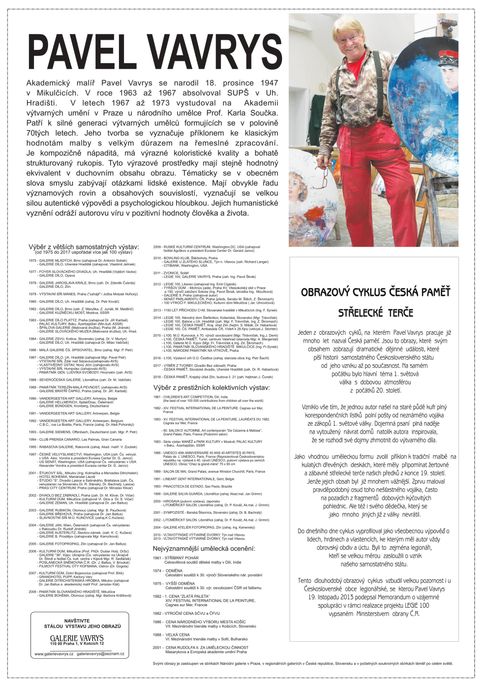 Each of his painting has a range of meaningful levels and contexts, characterized by a great deal of authentic testimony and psychological depth. Their humanistic expression reflects the author's belief in the positive values of man and life. Pavel Vavrys develops a unique style which encompasses an existential journey from within, and in so doing, found an important place within the art world.
