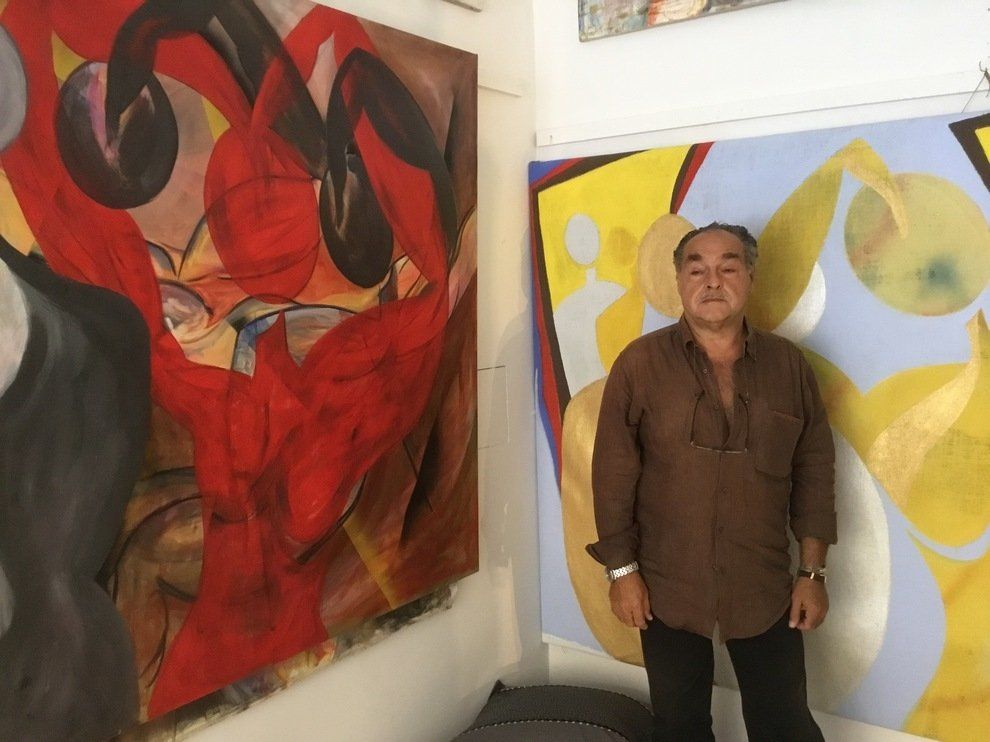 let talk about himself during the One hundred Painters Show in Margutta Street - Rome - introducing middle format works with oil technique.